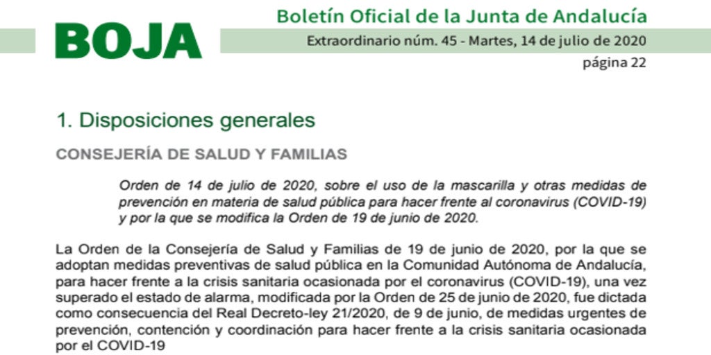 Desde El 16 De Agosto 2020 Nuevas Medidas Para Tratar De Frenar Los Nuevos Brotes De Coronavirus En Andalucia Junta De Andalucia Boja Orden De 16 De Agosto De 2020 Ayuntamiento De Tomares