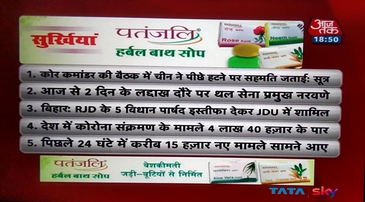 Credible Source Meghnad On Twitter Nlprimetime Begins Some Weird Shit Is Going Down On Aajtak Today It First Said Ayush Ministry Has Prohibited Ads For Coronil The Medicine Launched By Patanjali