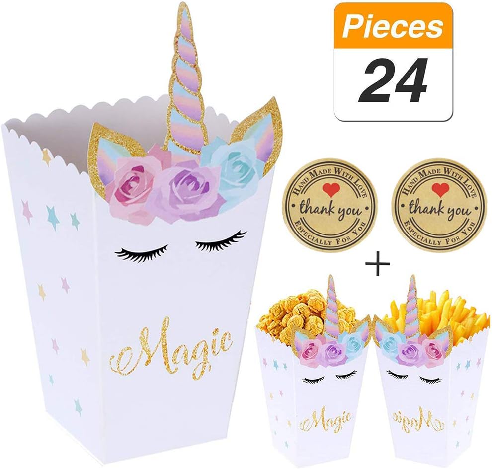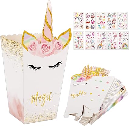 Amazon Com Apipi 18 Cajas De Aperitivos Con Patron De Unicornio De Palomitas De Maiz Cajas De Regalo Para Fiesta De Unicornio De Palomitas De Palomitas Con Pegatinas De Unicornio Para Baby