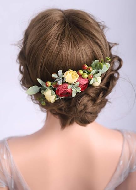 Deniferymake Up Corona De Flores Para Novia Accesorio Para Novia Corona Para Mujeres Y Ninas Novia Dama De Honor Rojo Y Champan Amazon Es Belleza
