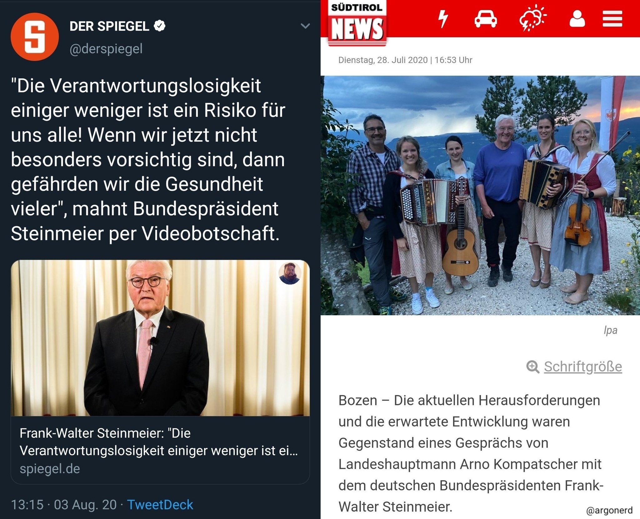 Grantler Genderfreier Account On Twitter Die Verantwortungslosigkeit Einiger Ist Eine Gefahr Fur Uns Alle Wer Erklart Bundespraesident Steinmeier Realsatire Und Doppelmoral Suedtirol Abstandhalten Maske Maskenpflicht Zweierleimass