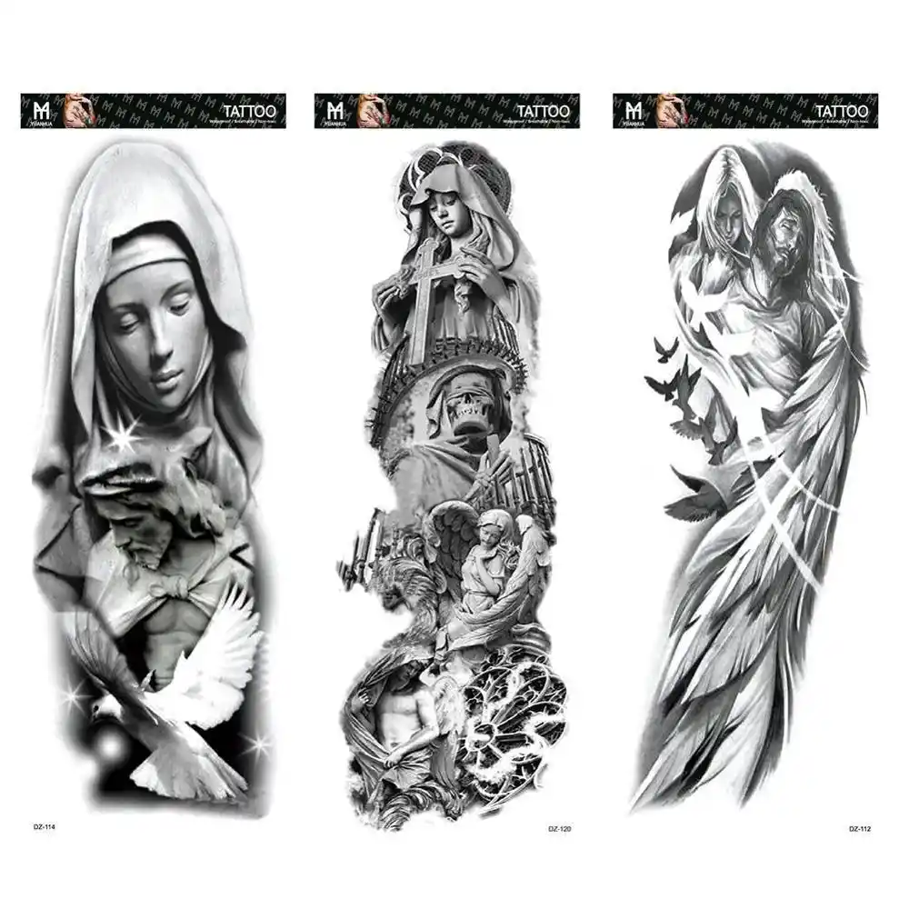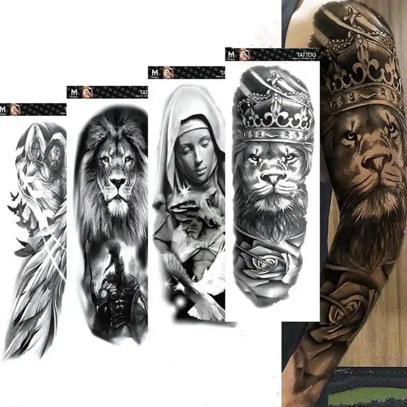 Manga De Tatuaje Para Brazo Grande Leon Corona Rey Rosa Impermeable Tatuaje Temporario Pegatina Lobo Salvaje Tigre Hombres Totem De Craneo Tatto Completo Aliexpress