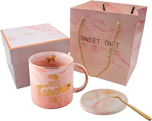 Amazon Com Best Teacher Ever Pink Marble Ceramic Coffee Mug 11 5oz And Coasters Set Teacher Gifts Teacher Appreciation Gifts Gifts For Teacher Birthday Gifts Ideas For Teacher Kitchen Dining