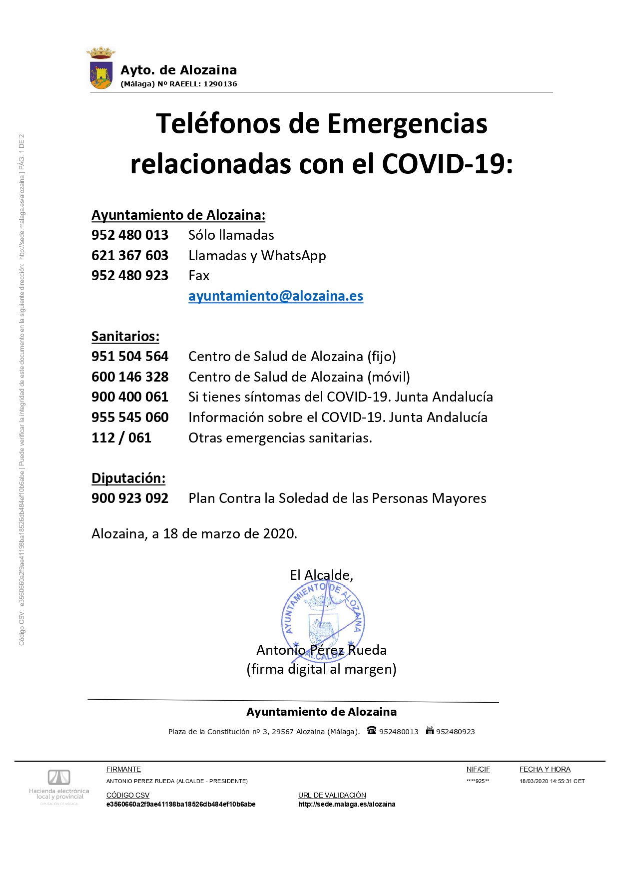 Salud Habilita Varios Telefonos Por El Coronavirus Y Pide Hacer Un Uso Responsable De Cada Linea Cordopolis El Diario Digital De Cordoba