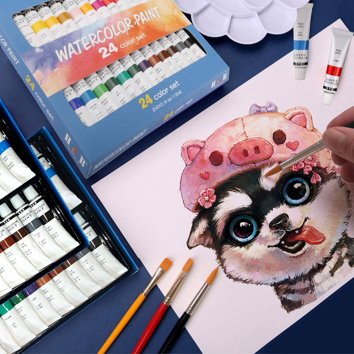 Amazon Com H B 24 Colors Watercolor Paint Set Aluminum Tubes 12ml Professional Art Painting Watercolor Paint Non Toxic Safe Premium Quality Painting Kit Perfect Gift For Artists Students Beginners Kids
