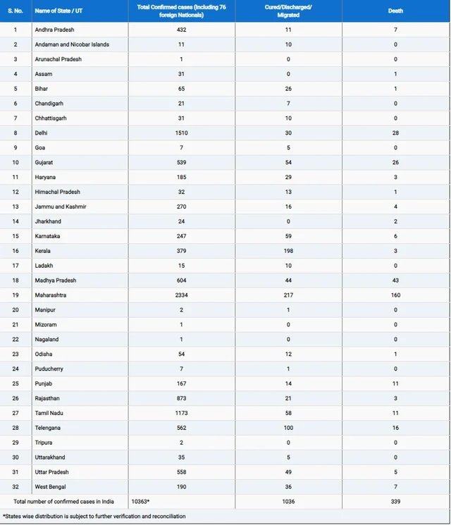 Coronavirus Update Covid 19 Cases In India Rise To 10 363 Here S The Latest State Wise Breakup