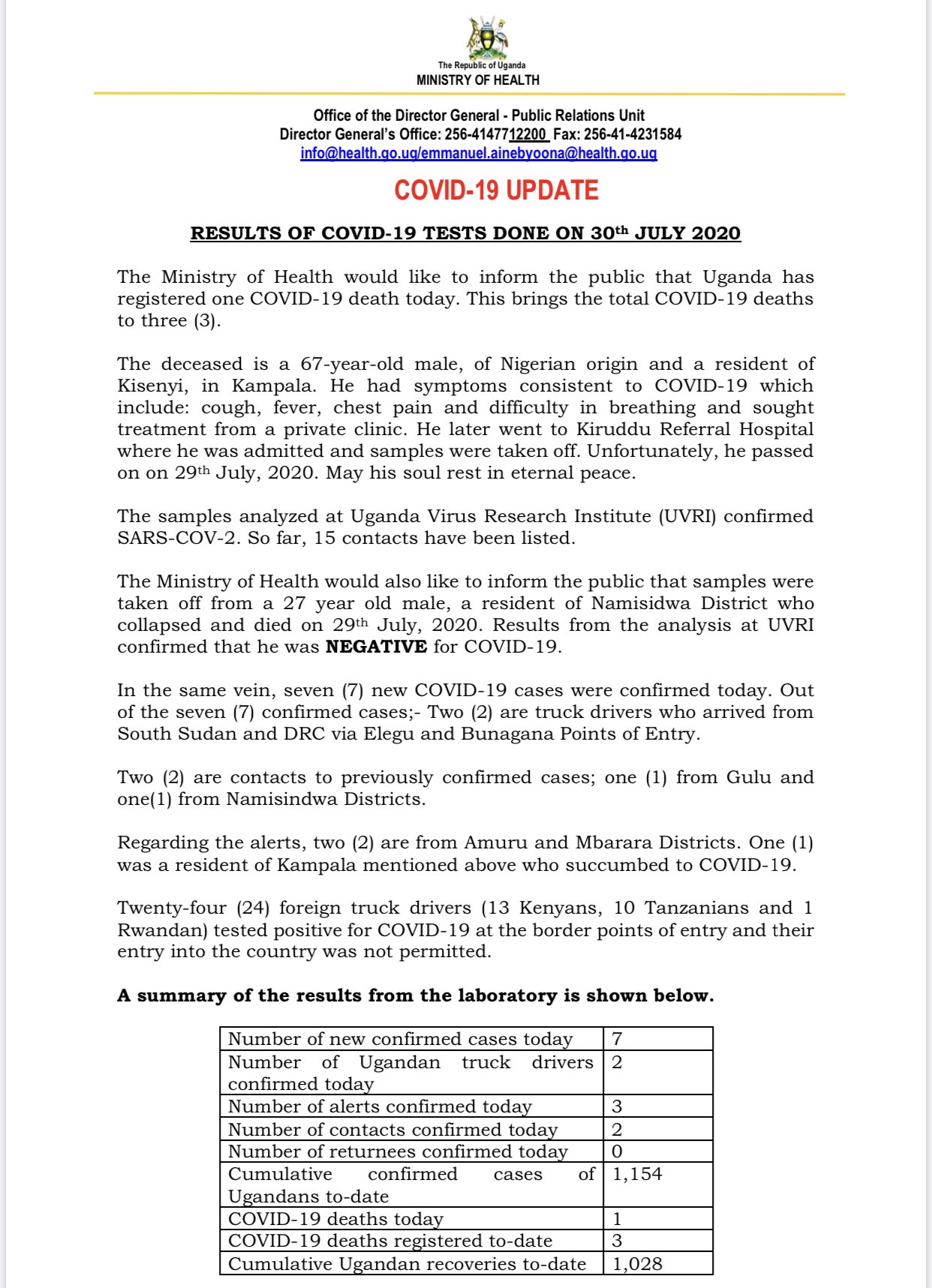 Ministry Of Health Uganda On Twitter All 1 408 Samples Tested Negative For Covid 19 Today 19 Cases Are In Stable Condition In Hospital 20 329 Samples Tested For Covid 19 To Date Total Confirmed Cases