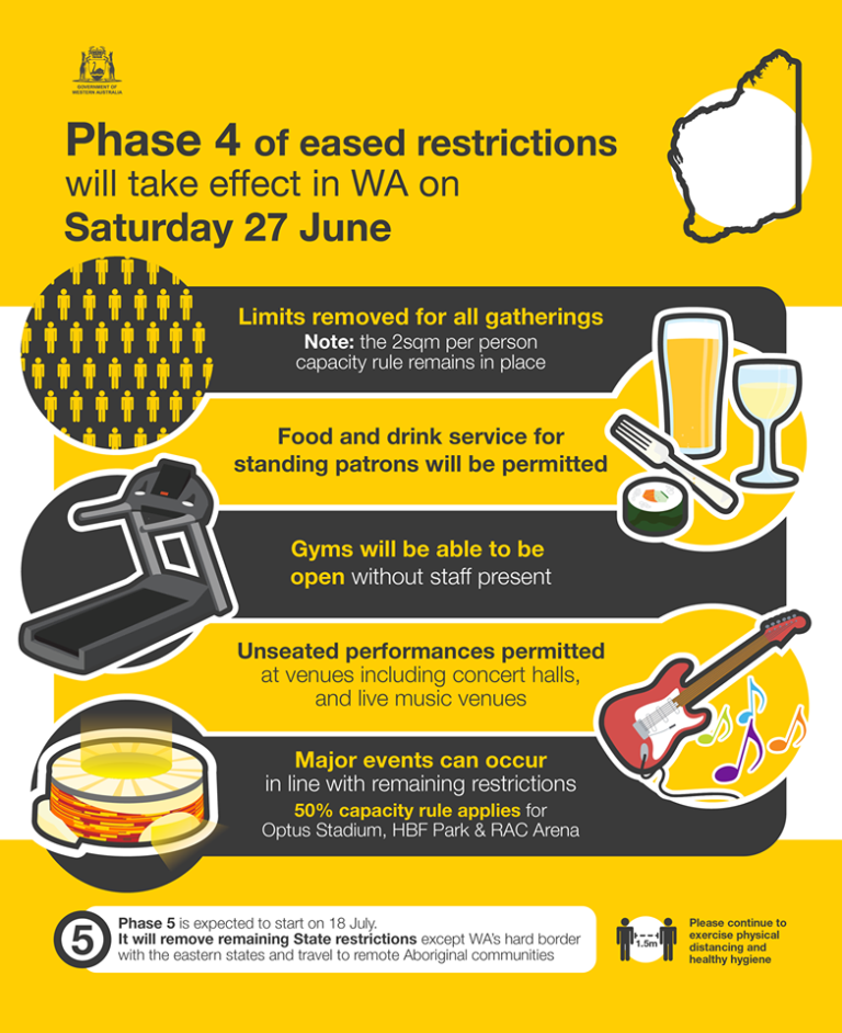 Due to the world leading response to covid in wa phase 4 started on saturday 27 june 1159pm friday 26 june and has resulted in further easing of restrictions including. Pet grooming in homedomestic services nannies housecleaning etc retail in store purchases allowed with restrictions professional servicesoffice based businesses telework. Wa to extend covid 19 commercial tenancy laws.