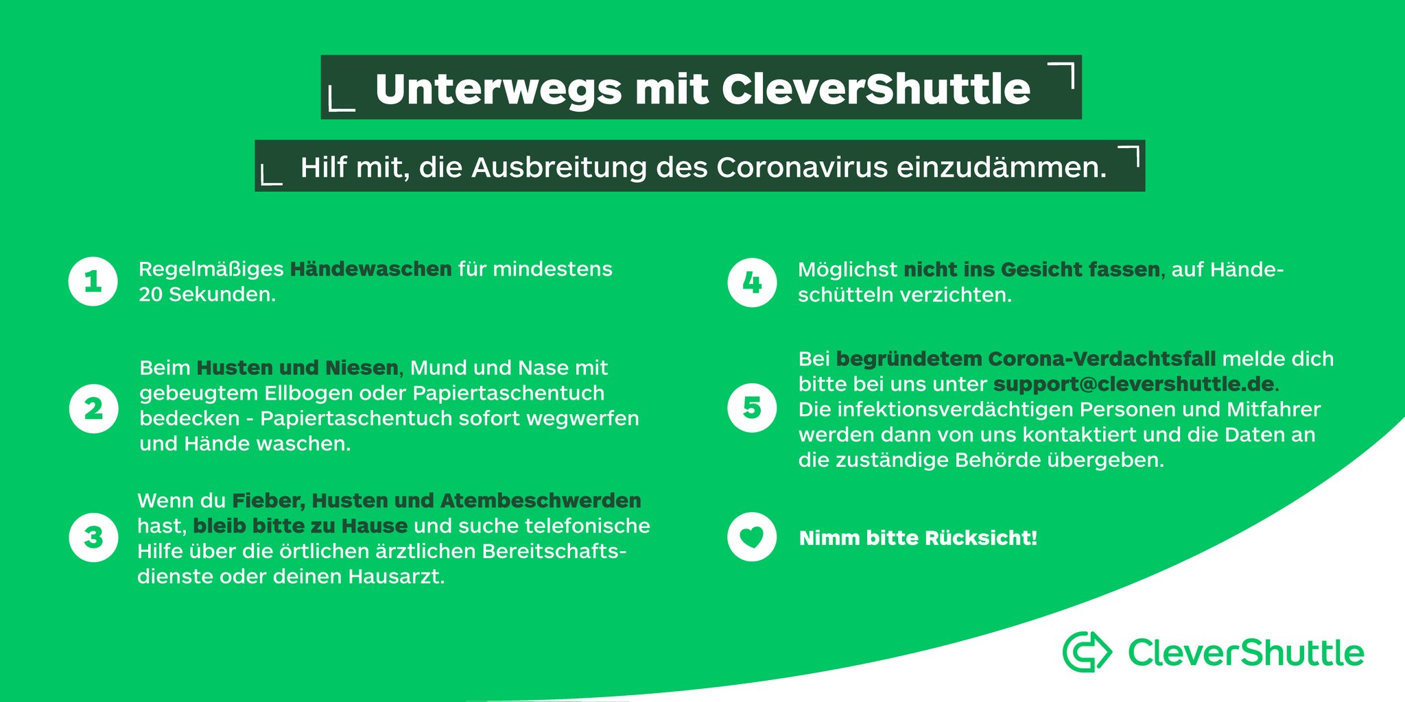 Clevershuttle On Twitter In Addition We D Like To Remind You To Follow These Instructions When Using Clevershuttle Please Only Get Into Our Cars On The Back Seats Please Refrain From
