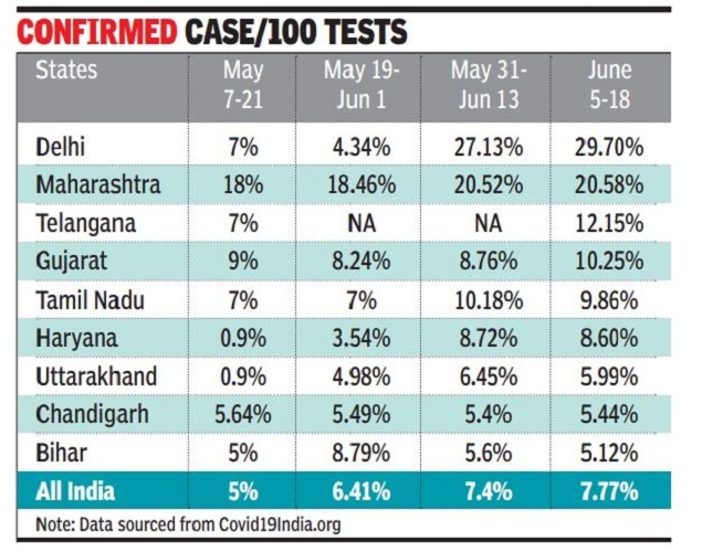 Covid 19 Positivity Rate Per 100 Tests Rises To 5 In Last 2 Weeks India News Times Of India